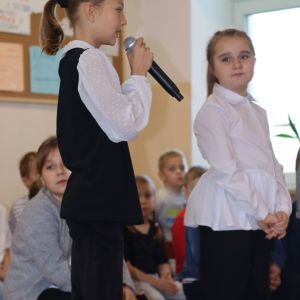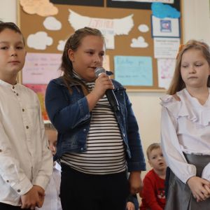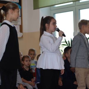 Następnie rozpoczęła się część artystyczna, w której pierwszaki dzielnie zaśpiewały piosenki i wyrecytowały wiersze.