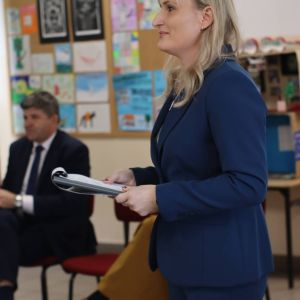 Pani Sylwia Mazurek – wychowawca pierwszoklasistów oraz Pani Dyrektor Irena Kostrzewa oficjalnie powitały wszystkich zebranych. Życzenia i słowa otuchy w stronę uczniów i rodziców skierował również Pan Wójt.