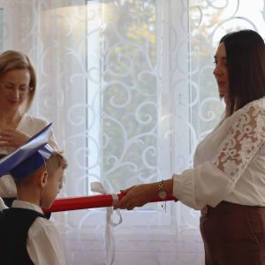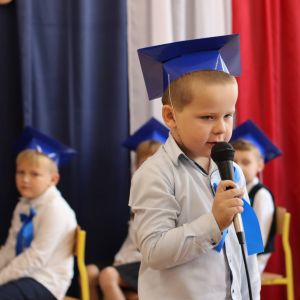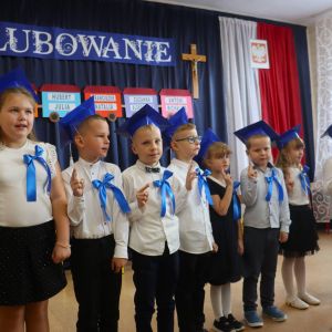 Po zakończeniu części artystycznej pierwszoklasiści uroczyście wygłosili słowa ślubowania, a następnie Pani Dyrektor dokonała symbolicznego pasowania każdego z uczniów. Była to niezapomniana chwila zarówno dla dzieci, jak i ich rodziców.