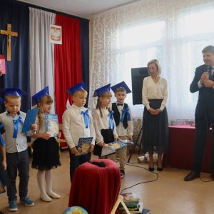Dziękujemy nauczycielom i pracownikom szkoły za ich nieocenioną pracę na rzecz edukacji i wychowania młodego pokolenia a uczniom klasy I serdecznie gratulujemy oraz życzymy, aby każdego dnia przychodzili do szkoły z uśmiechem, miło spędzali w niej czas wśród koleżanek i kolegów oraz, by nigdy nie brakowało im chęci do nauki i rozwoju swoich umiejętności.