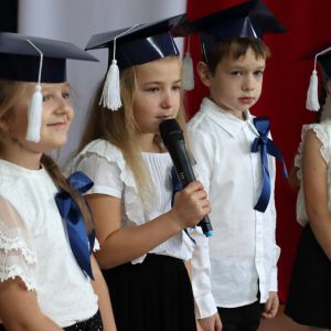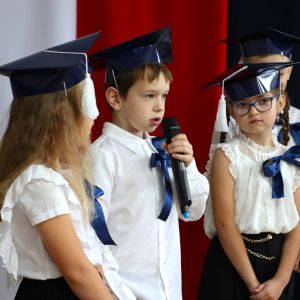 W obecności Wójta Gminy Ostrówek Pana Marka Barana, Dyrektora Szkoły Pana Jacka Garbacza, szczęśliwych rodziców oraz kolegów i koleżanek z klasy II, pierwszoklasiści zaprezentowali swoje umiejętności aktorskie. W części artystycznej można było podziwiać zdolności wokalne oraz recytatorskie małych artystów. Dzieci wykazały się również patriotyczną postawą bezbłędnie odpowiadając na pytania o symbole Polski. Nad całością czuwała Pani Elżbieta Siwek – wychowawczyni tegorocznych pierwszoklasistów, która przygotowała ich do tej podniosłej chwili.
