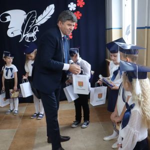 Na początek edukacyjnej drogi oraz w nagrodę za wspaniały występ pierwszoklasiści otrzymali upominki od Pana Wójta oraz kolegów z klasy II.