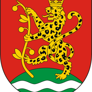 Herb gminy to kształt tarczy późnogotyckiej, który przedstawia złotego lamparta na czerwonym tle. U stóp lamparta widnieje srebrna rzeka (Wieprz) a w szponach trzyma złotą gałązkę żurawinową. Lampart ozdobiony jest czarnymi cętkami a jego głowę zdobi korona.