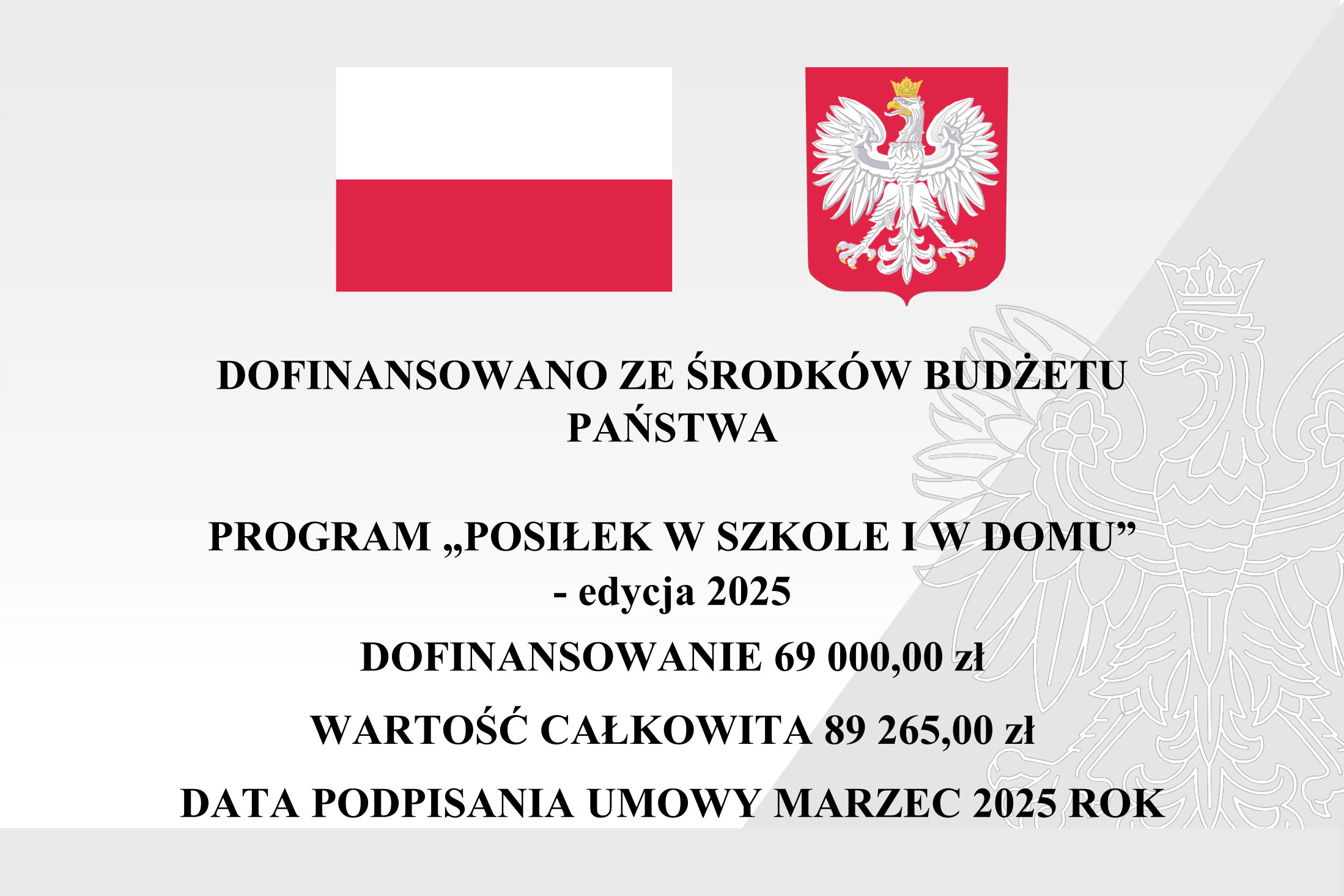 W związku z realizacją zadania własnego Gminy w zakresie dożywiania dzieci i zapewnienia posiłku osobom tego pozbawionym, w ramach wieloletniego rządowego Programu „Posiłek w szkole i w domu” na lata 2024-2028, Gmina Ostrówek w ramach zawartej w dniu 19 marca 2025 roku otrzymała dofinansowanie w wysokości 69 000,00 zł. całkowita wartość zadania wynosi 89 265,00 zł, z uwzględnieniem środków własnych w wysokości 20 265,00 zł.